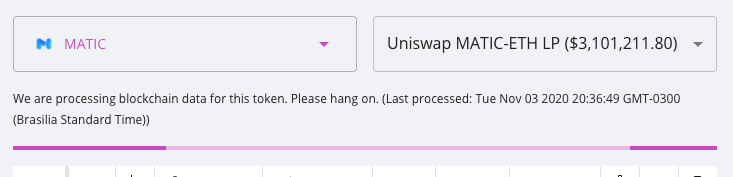At the moment, WalletNow Charts works by indexing the blockchain data in a "lazy" manner. This means that the first time a token chart is accessed, you may see an indexing status like this: