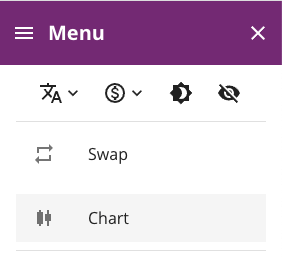 You can access WalletNow Charts by clicking on the "Candle Sticks" icon (in the top-right corner, or inside the menu for small screens):